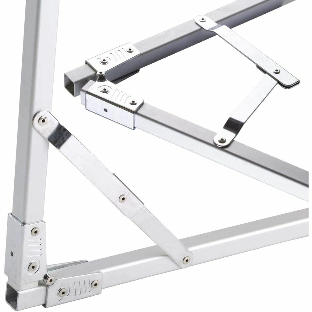 Collapsible Design: The lightweight 1″ square anodized hollow aluminum scrim panel with hinged joints and 8 locking points ensures stability, while easily collapsing down to a transportable 4′ x 6″ x 3″ size