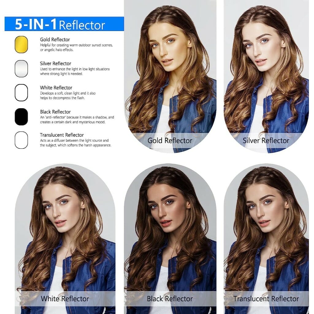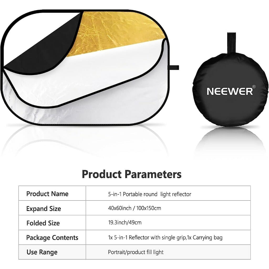 NEEWER 40″x60″/100x150cm Light Reflectors for Photography, Portable 5 in 1 Collapsible Multi Disc with Bag – Translucent, Silver, Gold, Black, White Diffuser for Studio and Outdoor Lighting