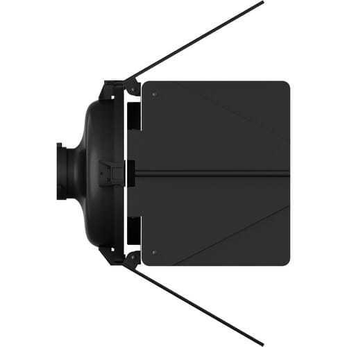 The 10″ F10 Barndoors for the LS 600d Fresnel Attachment from Aputure offer a means to control the 15 to 45° beam spread range of the Fresnel. Simply swing one or more leaves into the beam path to light areas you want and to keep light from areas you don’t want illuminated. The 8-leaf design gives even greater control than 4-leaf versions and provides clean cuts of light.